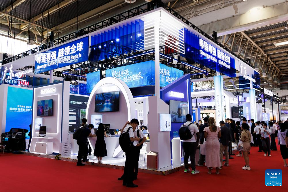 This photo taken on July 17, 2025 shows the pavilion of Guangdong Province during the third China International Supply Chain Expo (CISCE) in Beijing, capital of China.