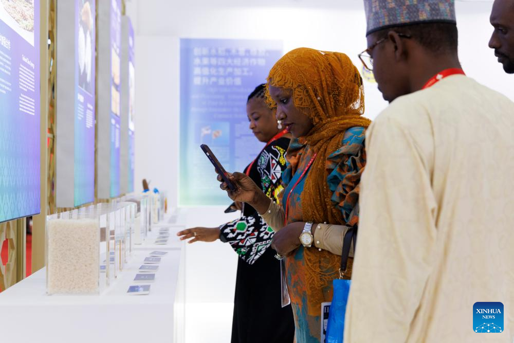 Visitors from Nigeria learn about agricultural products at the pavilion of Thailand during the third China International Supply Chain Expo (CISCE) in Beijing, capital of China, July 17, 2025.