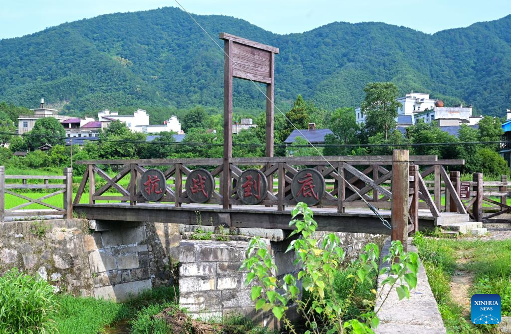This photo taken on July 15, 2025 show the Ye Ting Bridge at the memorial hall of the former headquarters of the New Fourth Army in Jingxian County, east China's Anhui Province. Located in Yunling Township of Jingxian County in Xuancheng City, the memorial hall covers an area of 20,000 square meters. It is one of the important heritage sites under state protection, and was established based on 11 preserved sites that the New Fourth Army headquarters had been stationed in Yunling from 1938 to 1941, during the Chinese People's War of Resistance Against Japanese Aggression. (Xinhua/Zhou Mu)