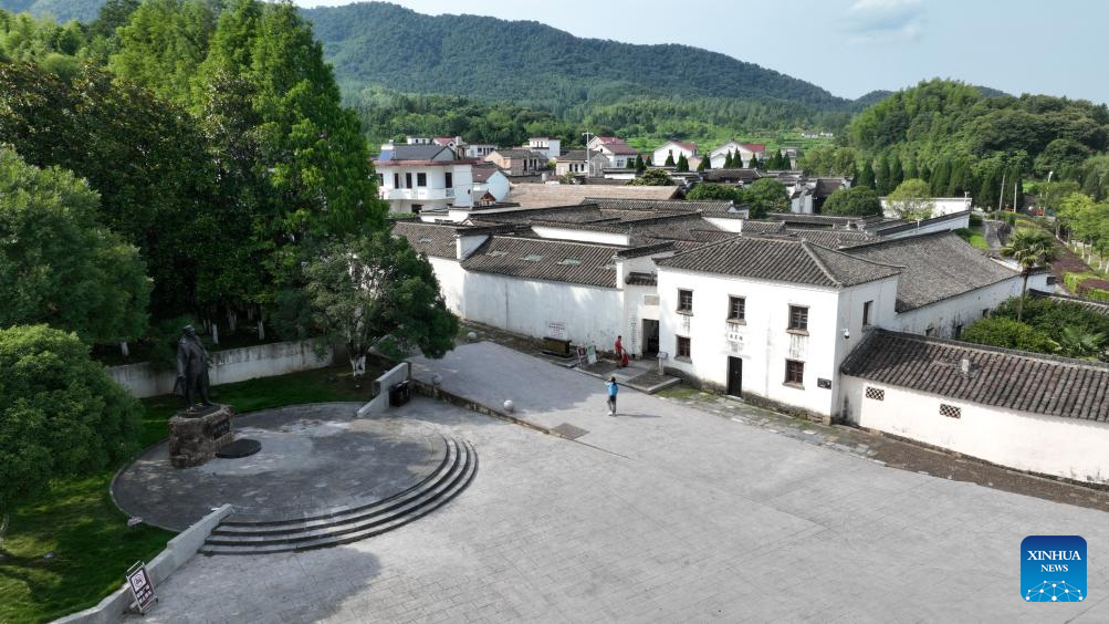 An aerial drone photo taken on July 15, 2025 shows the memorial hall of the former headquarters of the New Fourth Army in Jingxian County, east China's Anhui Province. Located in Yunling Township of Jingxian County in Xuancheng City, the memorial hall covers an area of 20,000 square meters. It is one of the important heritage sites under state protection, and was established based on 11 preserved sites that the New Fourth Army headquarters had been stationed in Yunling from 1938 to 1941, during the Chinese People's War of Resistance Against Japanese Aggression. (Xinhua/Zhou Mu)