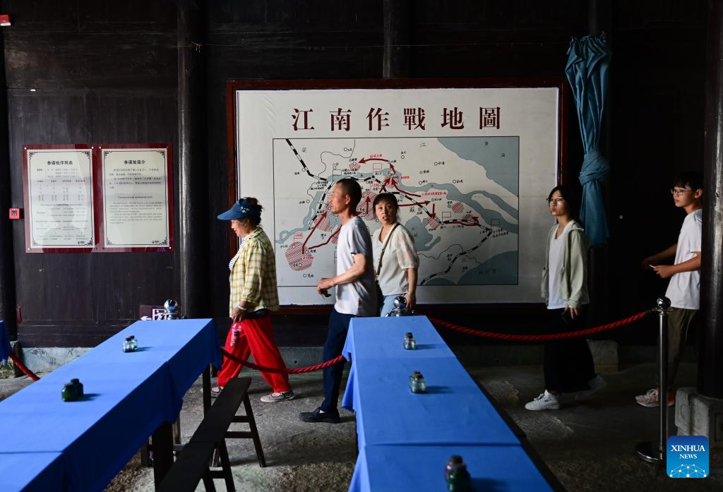 Tourists visit the memorial hall of the former headquarters of the New Fourth Army in Jingxian County, east China's Anhui Province, July 15, 2025. Located in Yunling Township of Jingxian County in Xuancheng City, the memorial hall covers an area of 20,000 square meters. It is one of the important heritage sites under state protection, and was established based on 11 preserved sites that the New Fourth Army headquarters had been stationed in Yunling from 1938 to 1941, during the Chinese People's War of Resistance Against Japanese Aggression. (Xinhua/Zhou Mu)