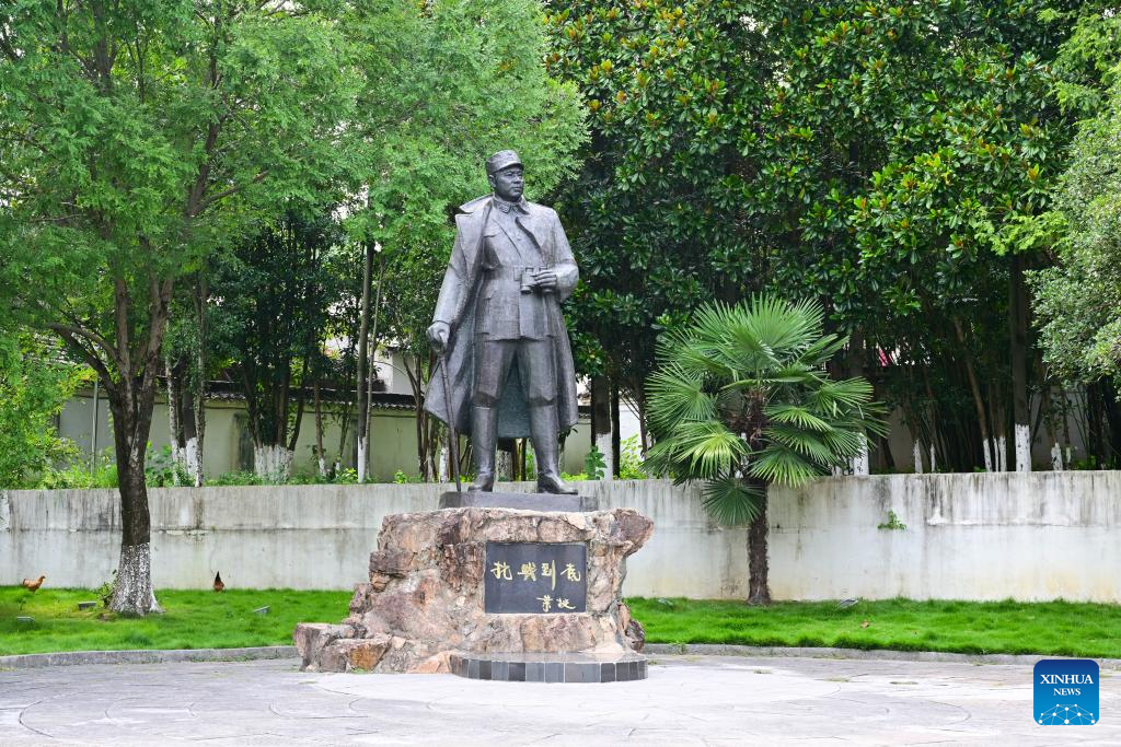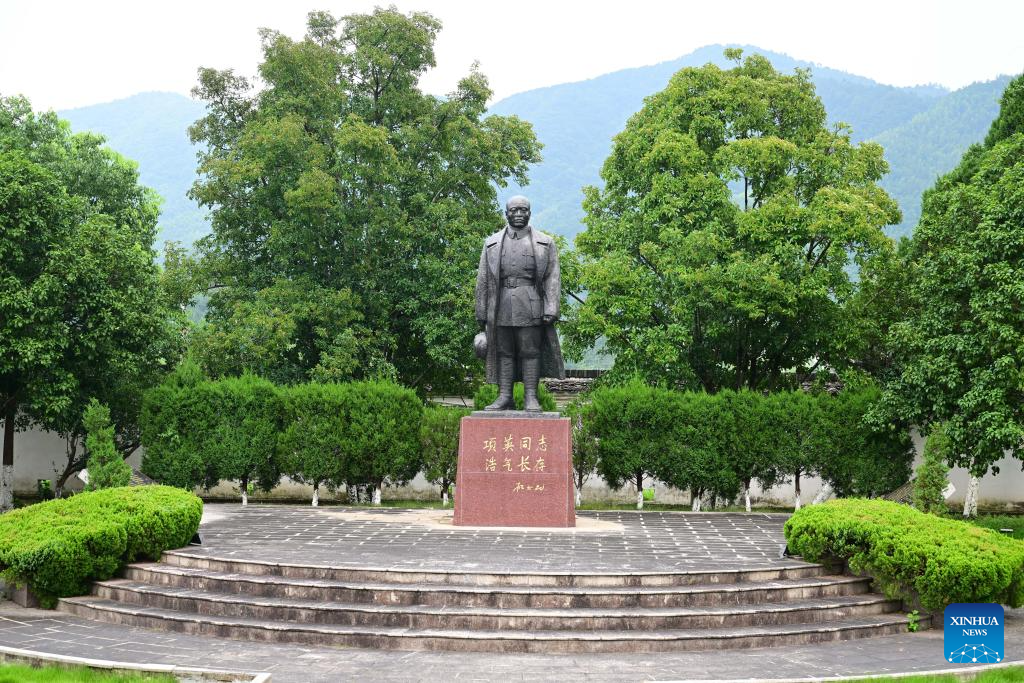 This photo taken on July 14, 2025 shows the statue of Xiang Ying, one of the founders of the New Fourth Army, at the memorial hall of the former headquarters of the New Fourth Army in Jingxian County, east China's Anhui Province. Located in Yunling Township of Jingxian County in Xuancheng City, the memorial hall covers an area of 20,000 square meters. It is one of the important heritage sites under state protection, and was established based on 11 preserved sites that the New Fourth Army headquarters had been stationed in Yunling from 1938 to 1941, during the Chinese People's War of Resistance Against Japanese Aggression. (Xinhua/Zhou Mu)