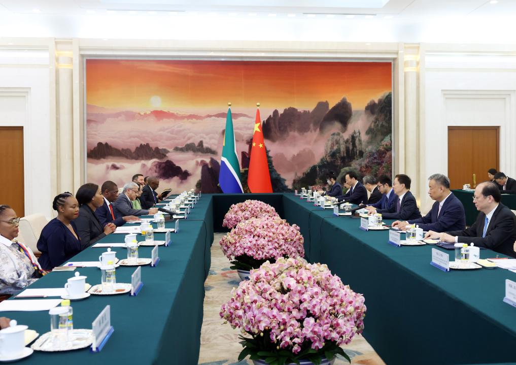 Chinese Vice President Han Zheng meets with South African Deputy President Paul Mashatile in Beijing, capital of China, July 17, 2025. (Xinhua/Liu Weibing)