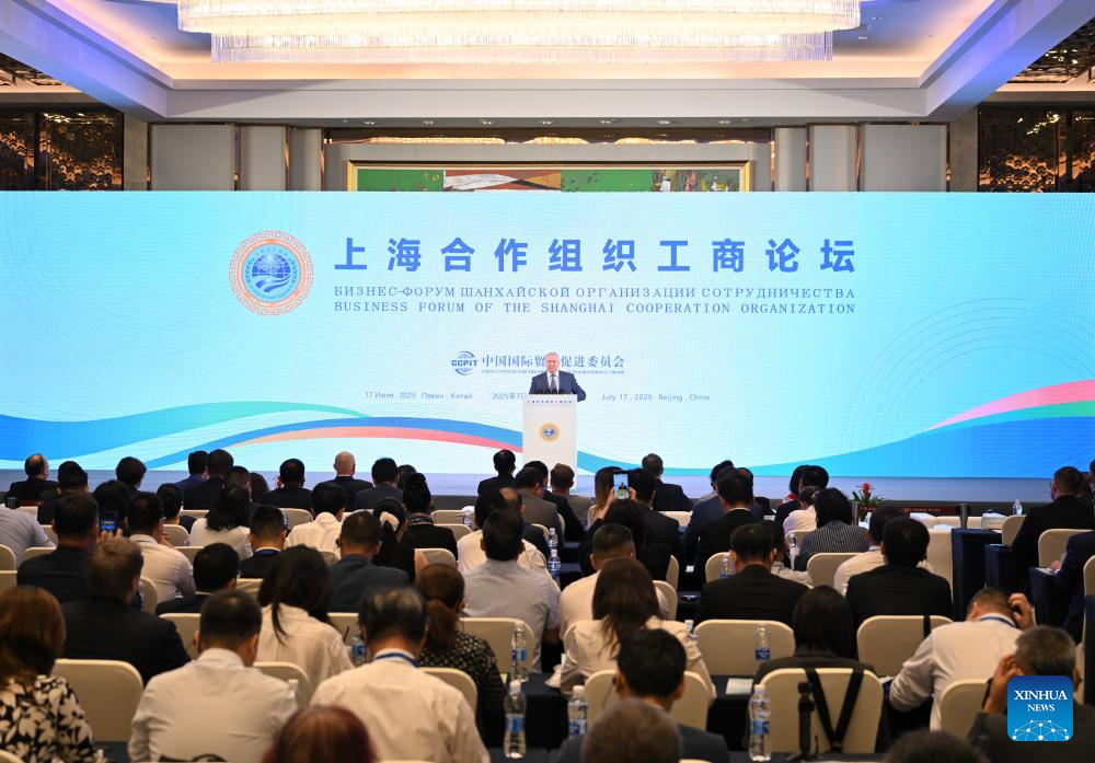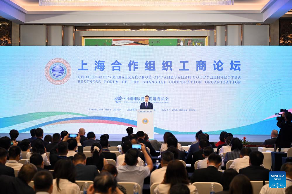 Guests attend the Shanghai Cooperation Organization (SCO) business forum in Beijing, capital of China, July 17, 2025. Hosted by the China Council for the Promotion of International Trade, the forum attracted nearly 400 participants from government institutions and the business community both at home and abroad. (Xinhua/Jin Liangkuai)