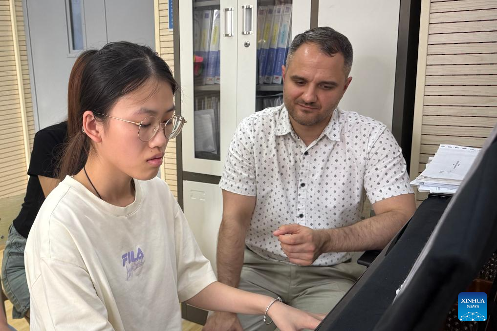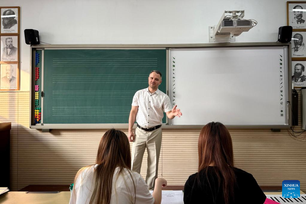 Ostapenko Anton Gennadievich teaches his students at Harbin Conservatory of Music in Harbin, northeast China's Heilongjiang Province, June 18, 2025. (Xinhua/Yang Siqi)
