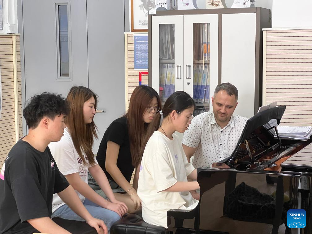 HARBIN, July 17 (Xinhua) -- At Harbin Conservatory of Music, Russian musicologist Ostapenko Anton Gennadievich joined students in singing, blending his voice with theirs as his fingers danced across the piano keys.