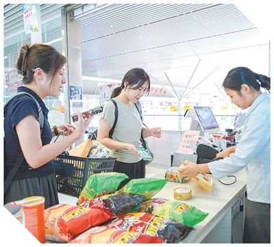 Passengers shop at a supermarket offering imported goods transported by the China-Europe freight train service at Zhengzhou East Railway Station in Zhengzhou, central China's Henan Province. (Photo/Cui Xuanhao)