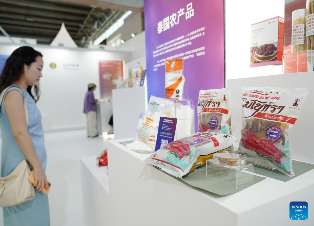 A visitor looks at an agricultural product from Thailand at the Green Agriculture Chain area during the third China International Supply Chain Expo (CISCE) in Beijing, capital of China, July 18, 2025. Themed "Connecting the World for a Shared Future," the 2025 CISCE runs from July 16 to 20. One highlight is the Green Agricultural Chain area, which displays world food products and the agricultural industrial chain with a focus on information-driven and intelligent farming. (Xinhua/Zhang Chenlin)