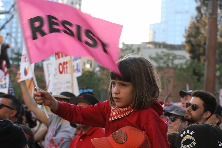 Protesters gather against controversial policies unveiled by U.S. President Donald Trump's administration at the Grand Park, downtown Los Angeles, California, the United States, on April 5, 2025. (Photo by Qiu Chen/Xinhua)