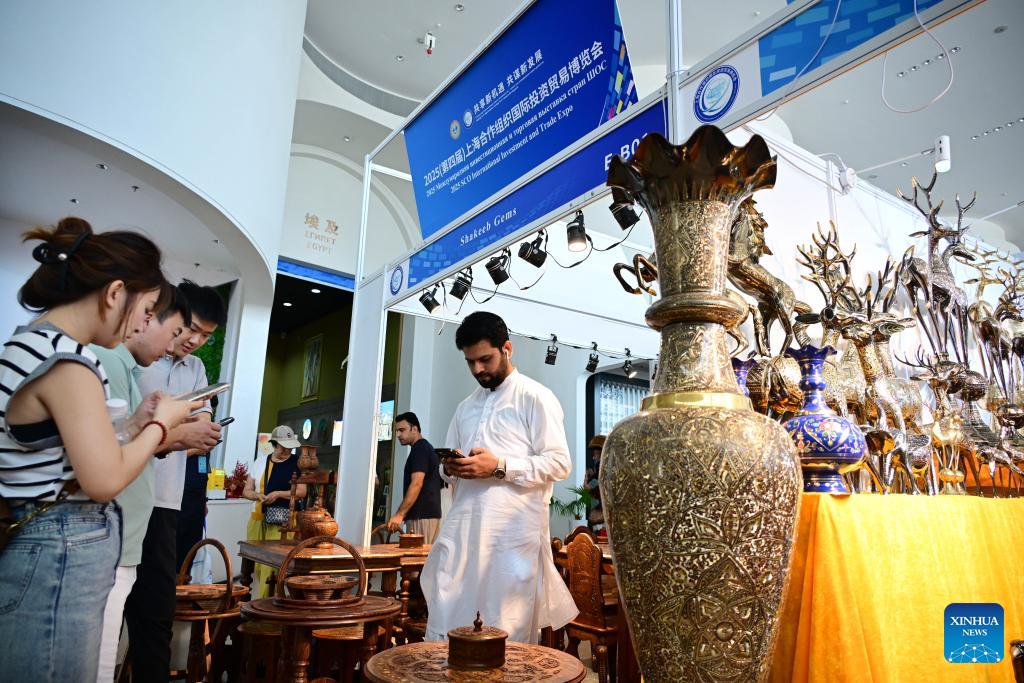 People visit the 2025 Shanghai Cooperation Organization (SCO) International Investment and Trade Expo in Qingdao, east China's Shandong Province, July 18, 2025. Under the theme "Sharing New Opportunities, Seeking New Common Development," the expo kicked off on Friday in Qingdao. (Xinhua/Li Ziheng)