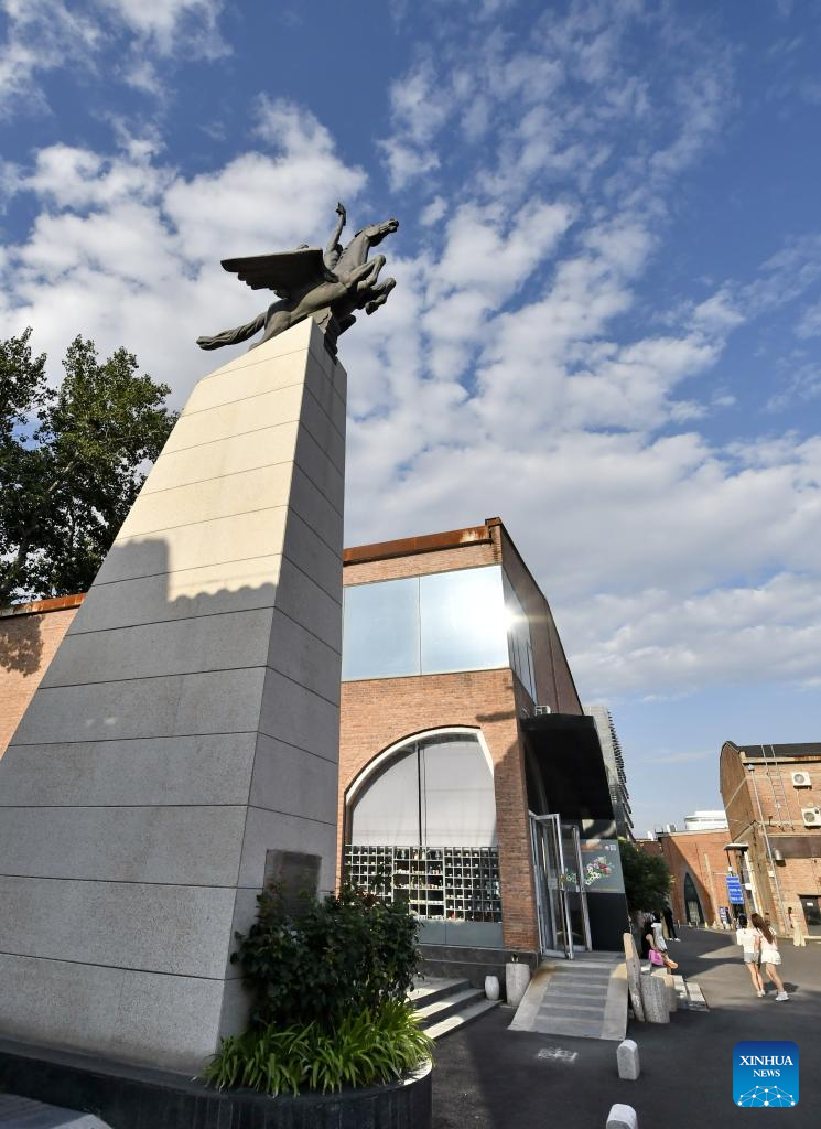 This photo taken on July 16, 2025 shows the 798 Art Zone in Beijing, capital of China. Built on the site of an abandoned factory complex, the 798 Art Zone, with age-old auburn bricks of its facade that are reminiscent of its industrial past, becomes a renowned place for museums and galleries of contemporary art. The art zone recorded 12.57 million visits in 2024. (Xinhua/Li Xin)