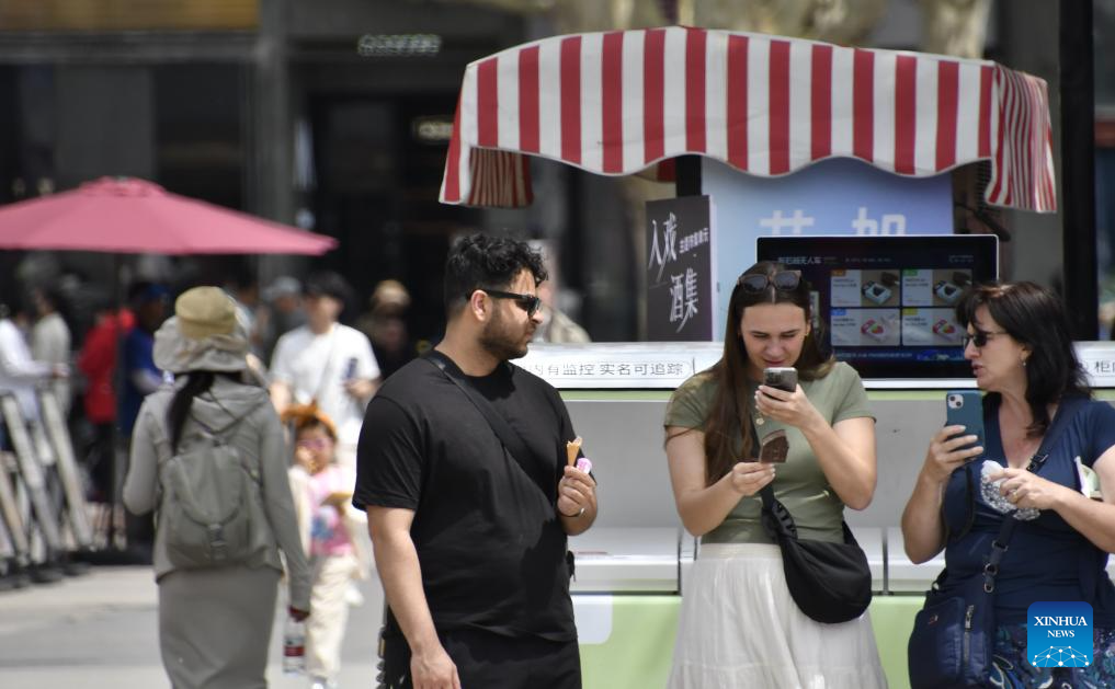 Tourists visit the 798 Art Zone in Beijing, capital of China, May 4, 2025. Built on the site of an abandoned factory complex, the 798 Art Zone, with age-old auburn bricks of its facade that are reminiscent of its industrial past, becomes a renowned place for museums and galleries of contemporary art. The art zone recorded 12.57 million visits in 2024. (Xinhua/Li Xin)