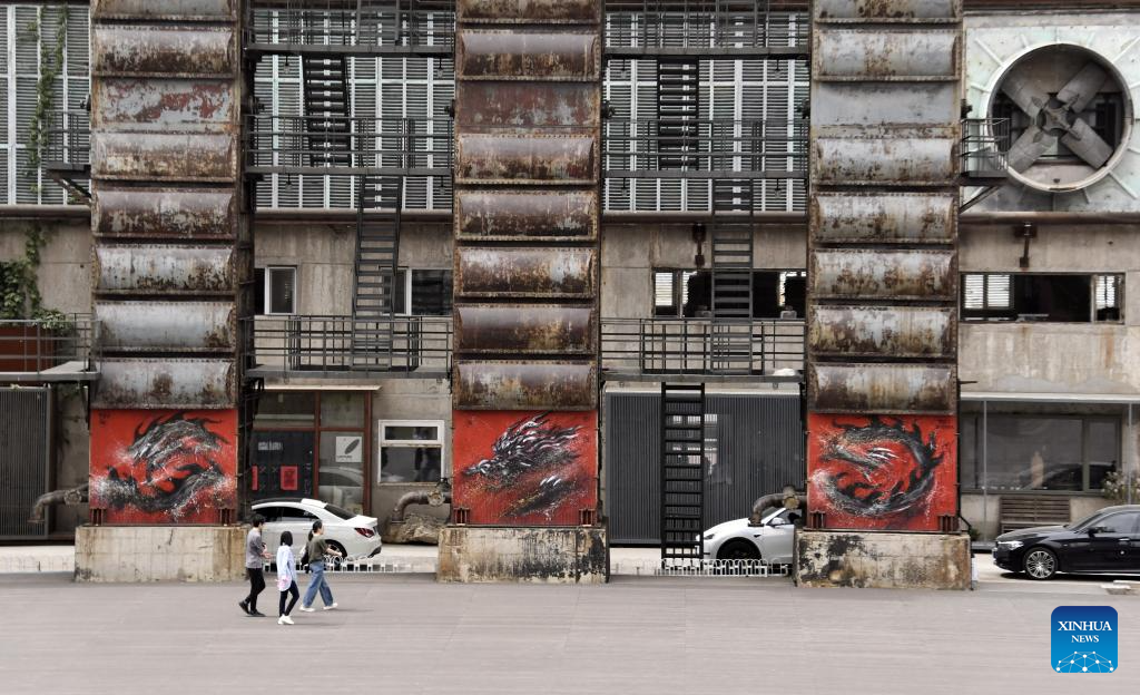 Tourists visit the 798 Art Zone in Beijing, capital of China, April 12, 2023. Built on the site of an abandoned factory complex, the 798 Art Zone, with age-old auburn bricks of its facade that are reminiscent of its industrial past, becomes a renowned place for museums and galleries of contemporary art. The art zone recorded 12.57 million visits in 2024. (Xinhua/Li Xin)