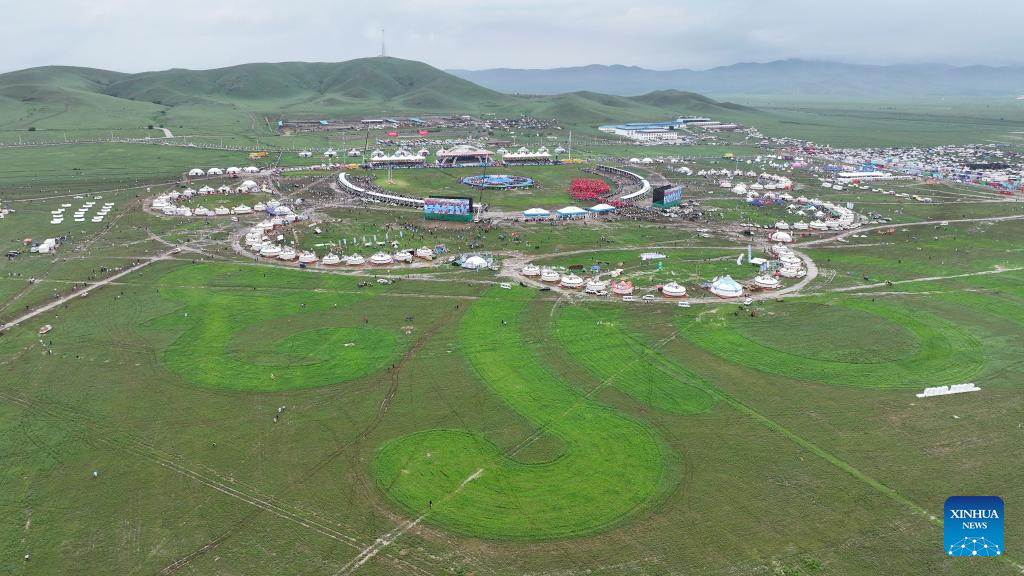 An aerial drone photo taken on July 19, 2025 shows the opening ceremony of a Nadam fair held in Xilinhot, Xilin Gol League, north China's Inner Mongolia Autonomous Region. (Xilin Gol League Integrated Media Center/Handout via Xinhua)