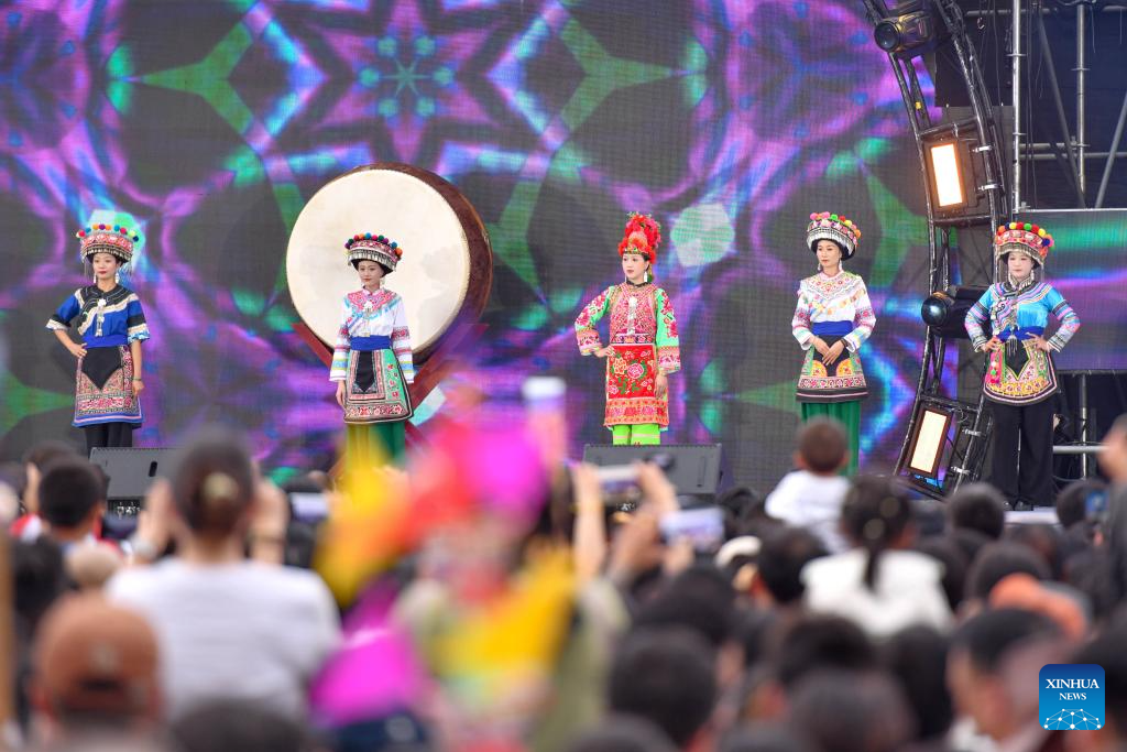 Actresses perform at the opening ceremony of a torch festival in Weishan Yi and Hui Autonomous County, Dali Bai Autonomous Prefecture, southwest China's Yunnan Province, July 19, 2025. A torch festival kicked off here on Saturday. (Xinhua/Peng Yikai)