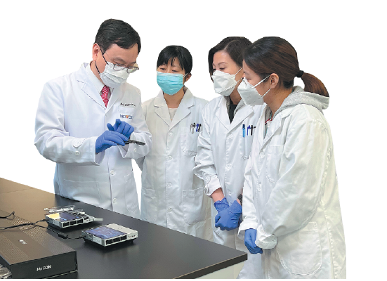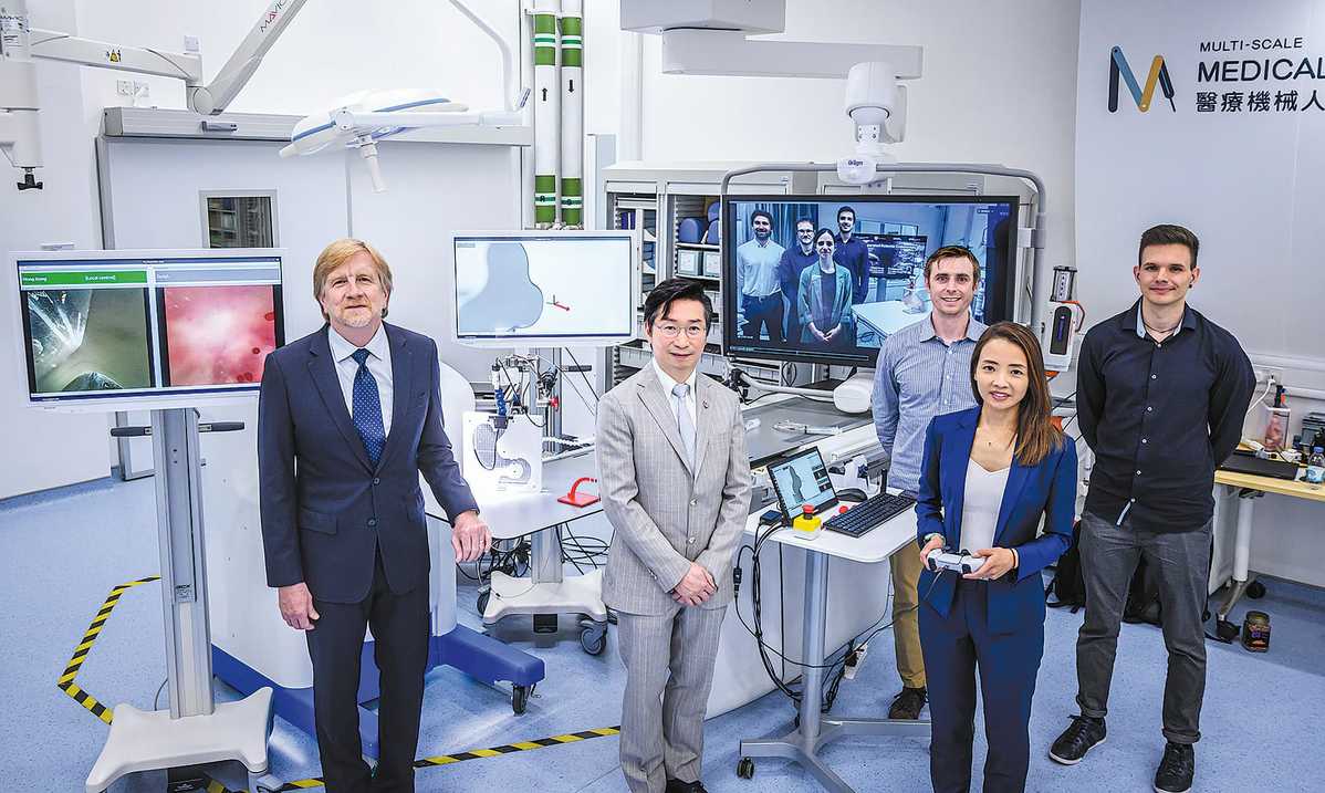 Philip Wai Yan (second from left), dean of the faculty of medicine of the CUHK and a team of researchers at the Multi-Scale Medical Robotics Center on Dec 6. XINHUA