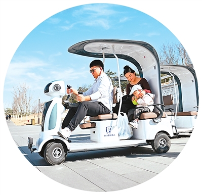 A tourist drives a vehicle with a "cyber tour guide" at a park in Xiong'an New Area, north China's Hebei Province. (Xinhua/Mou Yu)