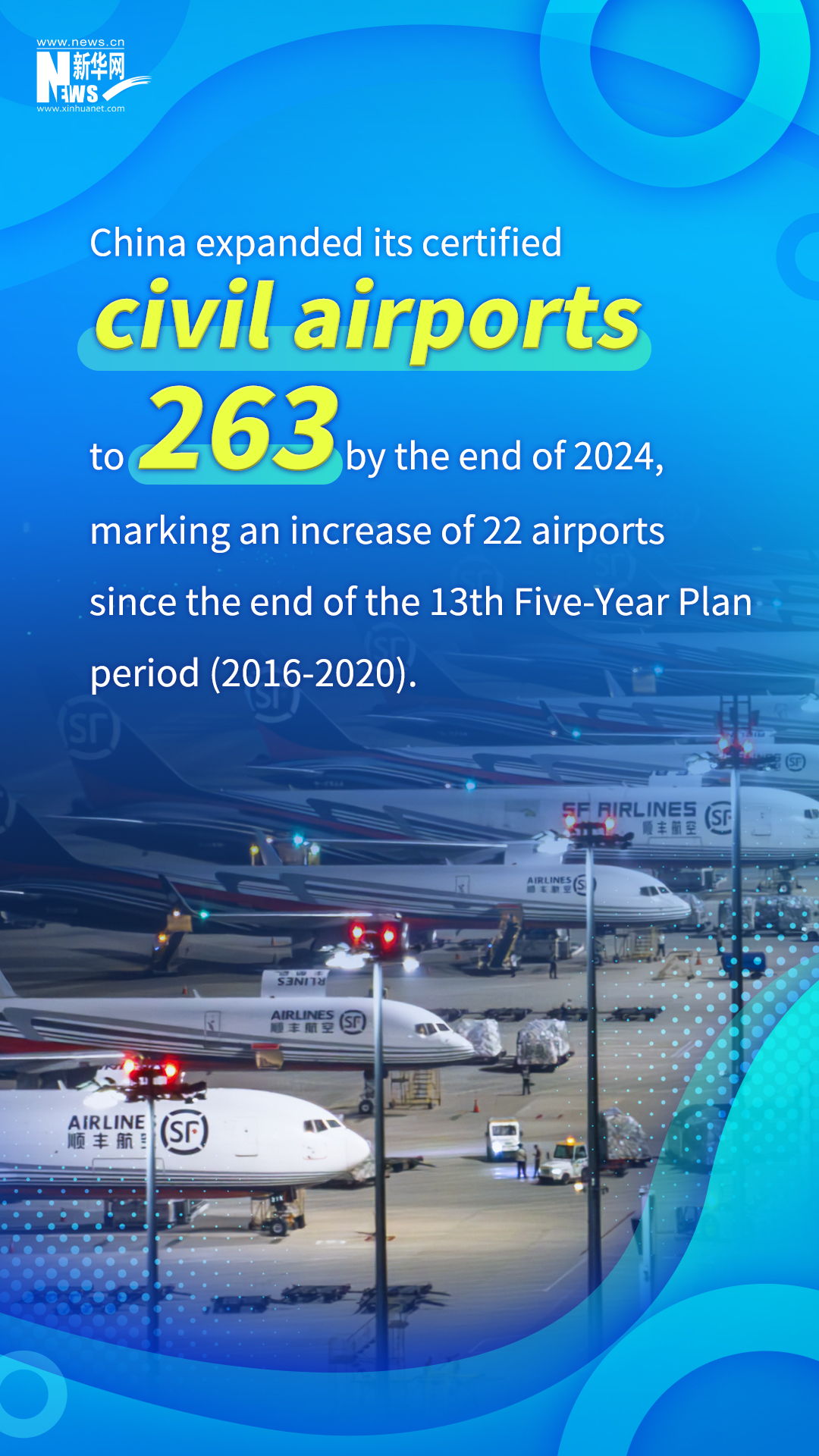 Certified civil airports increased to 263 by the end of 2024, 22 more than in 2020, Liu said, adding that air services now cover over 91 percent of the country's population.