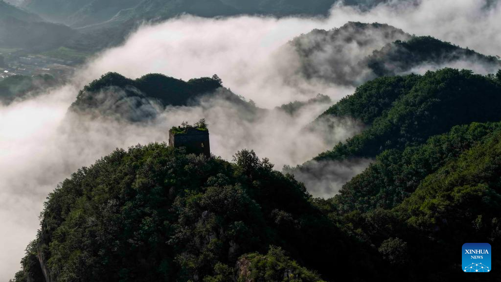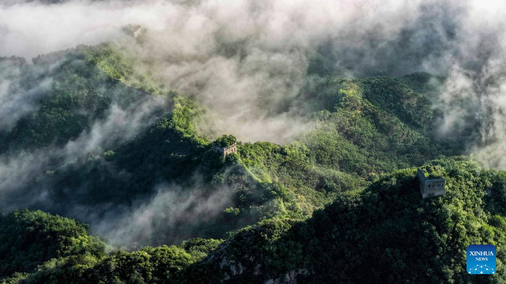 An aerial drone photo taken on July 21, 2025 shows a view of the Yumuling section of the Great Wall in Qianxi County, north China's Hebei Province. (Photo by Liu Mancang/Xinhua)
