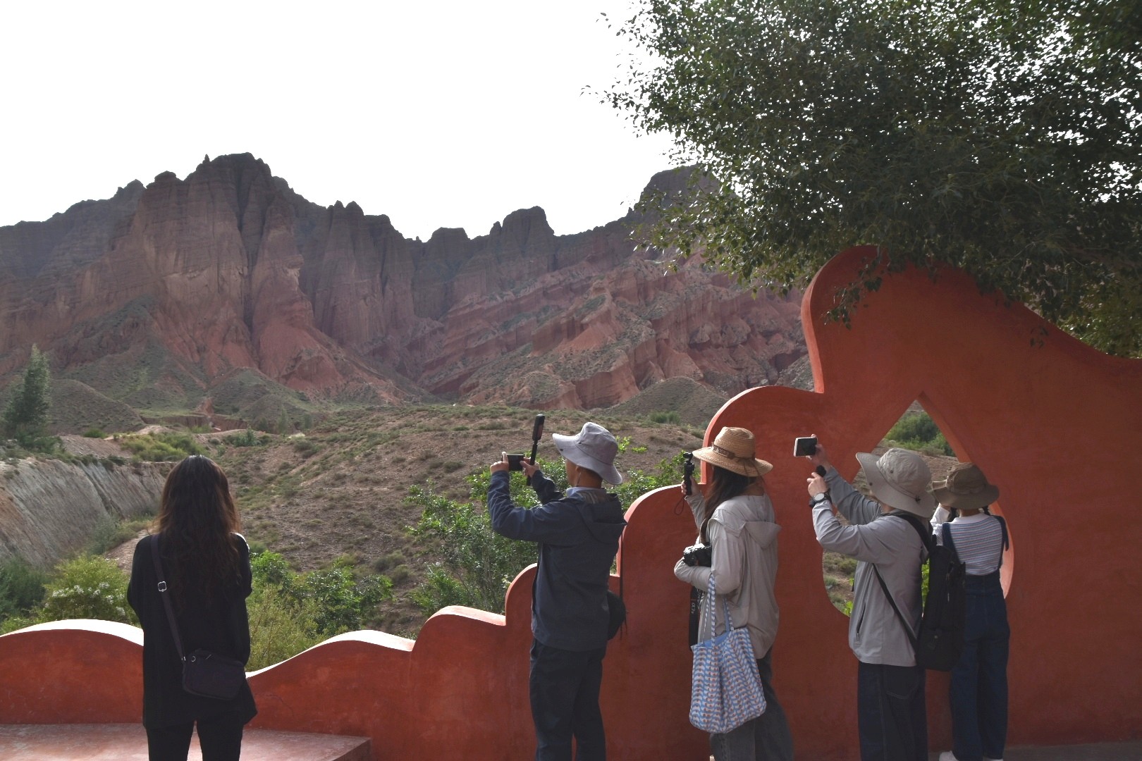 Photo taken on July 22, 2025 shows tourists enjoying the scenery at Qinghai Guide National Geopark in northwest China's Qinghai Province. (People's Daily Online/Zhang Kaiwei)