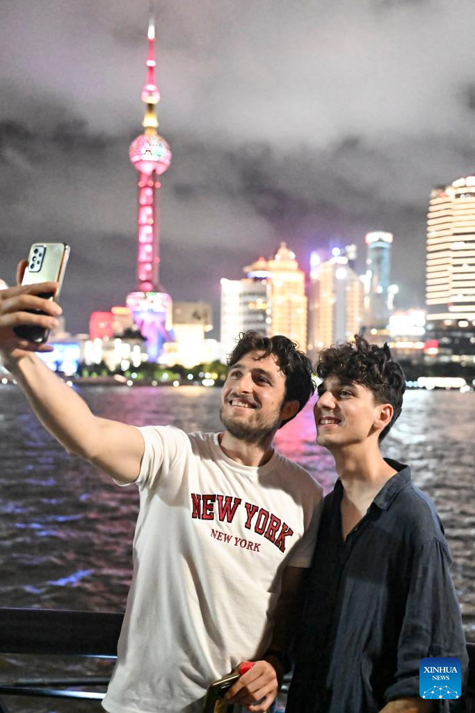 Shanghai has seen a surge in inbound tourism in summer travel season this year since July 1. The city recorded 187 thousands inbound tourist trips during July 1 to July 15, a 35.5 percent increase from the previous year. Among them, 92 thousands visits were visa-free entries, accounting for nearly 50 percent of the total number of inbound foreign travelers. (Xinhua/Tang Siqi)