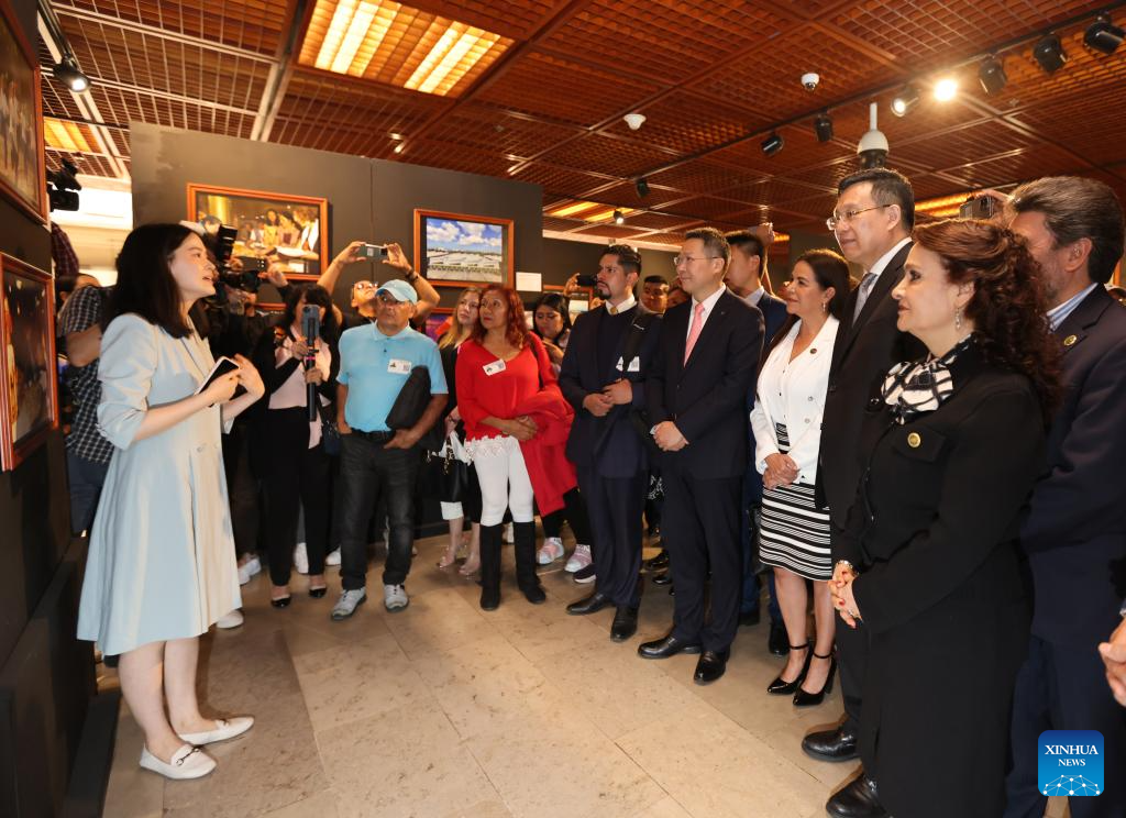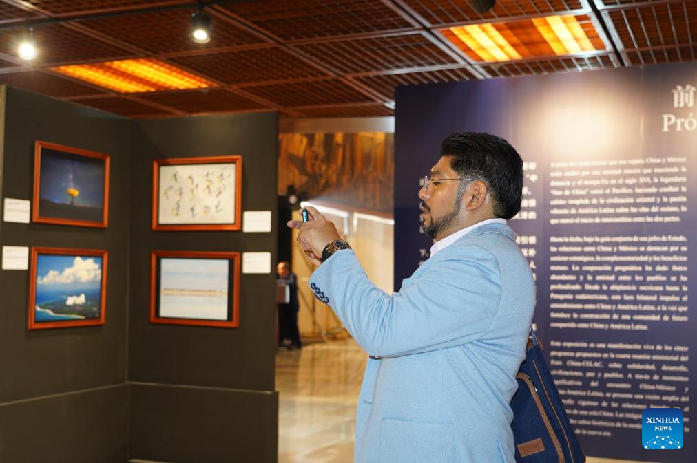 Guests visit a news photo exhibition in Mexico City, Mexico, July 18, 2025. The news photo exhibition, co-organized by Xinhua News Agency and the Mexican Chamber of Deputies, kicked off here on July 18. (Xinhua/Li Mengxin)