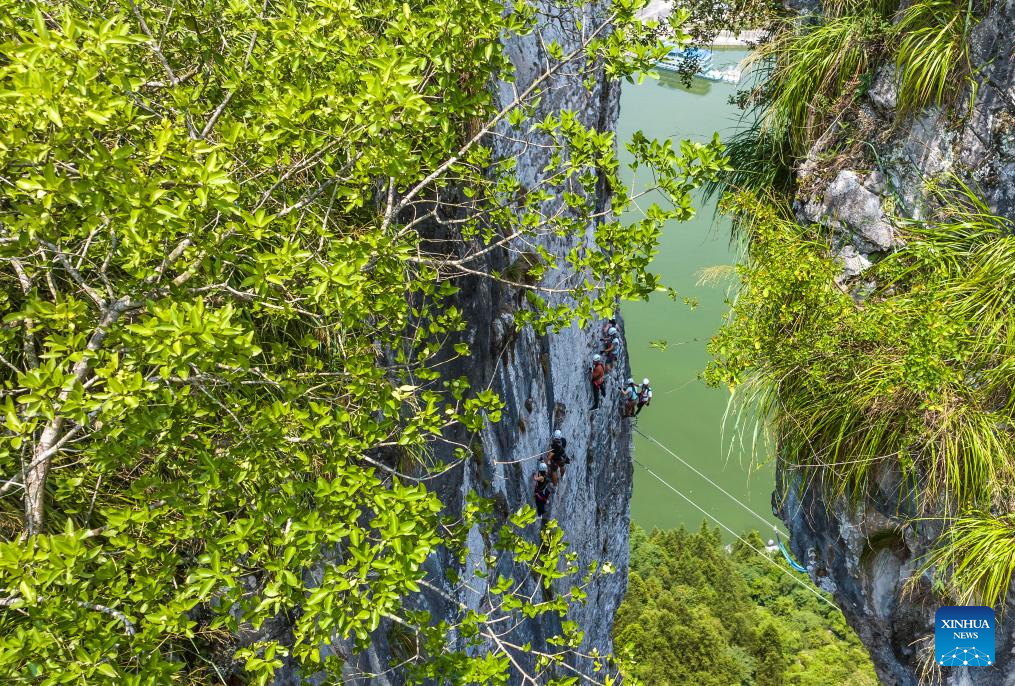 Guo Qing, a 29-year-old instructor at the "via ferrata" route in Huaping, leads a team of six local guides. He told Xinhua that some of his colleagues previously worked far from home in eastern China but have since returned and trained as certified climbing coaches.