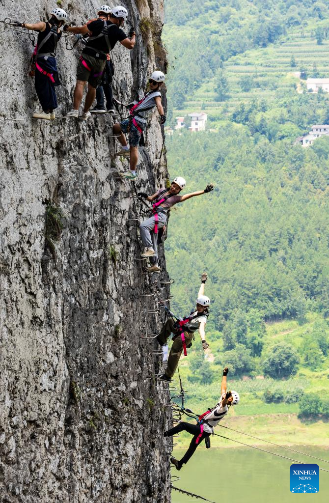 In another scenic area along the Enshi section of the Qingjiang River, a new "via ferrata" course has drawn some 1,000 visitors since its opening in early May. The route is especially popular among young travelers and families, according to the administration of the scenic area.