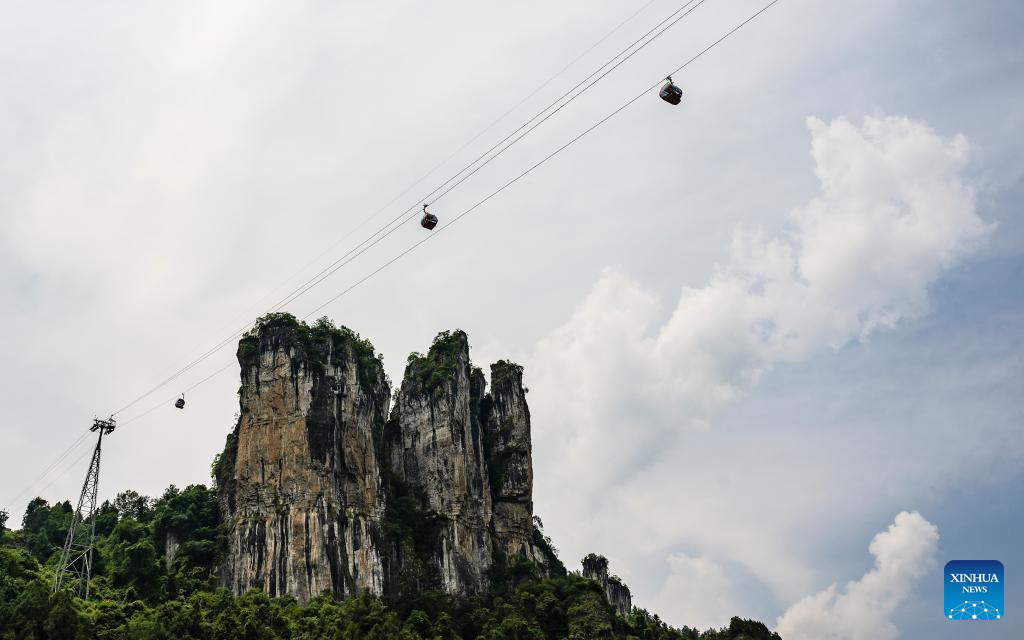 A ropeway is pictured at a scenic area in Enshi Tujia and Miao Autonomous Prefecture, central China's Hubei Province, July 8, 2025. (Photo by Zheng Jiayu/Xinhua)