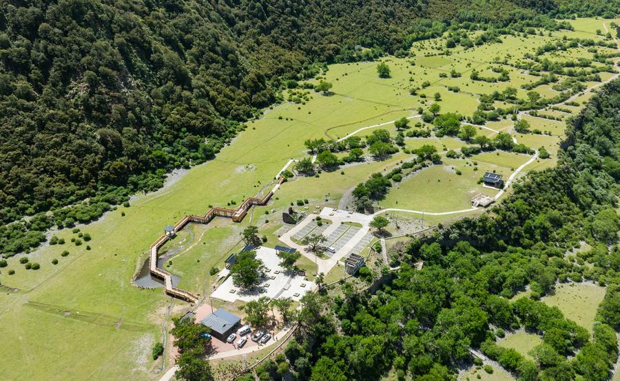 Tobgye patrols on a boardwalk of Linze ecological and cultural scenic area in Linze Village of Gongbo'Gyamda County, Nyingchi City, southwest China's Xizang Autonomous Region, on July 23, 2025. (Xinhua/Tenzin Nyida)