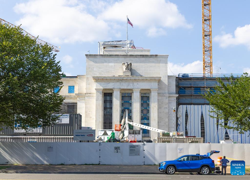 Photo taken on July 24, 2025 shows the U.S. Federal Reserve building in Washington, D.C., the United States. U.S. President Donald Trump visited the Federal Reserve on Thursday. (Xinhua/Hu Yousong)