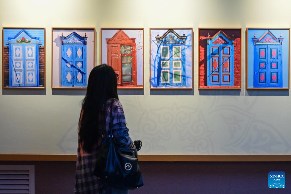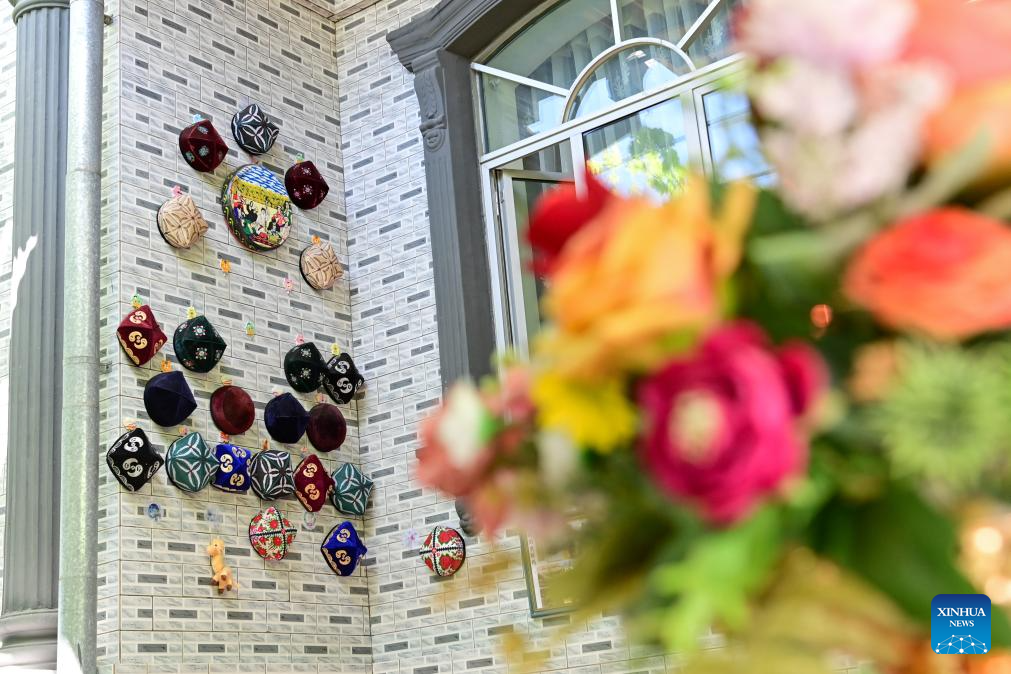 A tourist visits the pomegranate flower exhibition hall at Kazanqi culture tourism area in Yining City, Ili Kazak Autonomous Prefecture, northwest China's Xinjiang Uygur Autonomous Region, July 23, 2025. In recent years, Yining City has revitalized its old town through cultural-tourism integration. The city has been preserving nine heritage sites and over 160 intangible cultural items while upgrading traditional crafts into creative industries. Ancient architecture and residential buildings have been transformed into tourist attractions, creating jobs and bringing vitality to the old town. (Xinhua/Ding Lei)