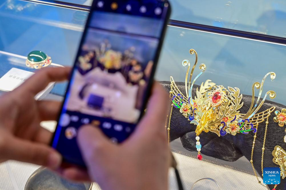 A tourist takes photos at the pomegranate flower exhibition hall at Kazanqi culture tourism area in Yining City, Ili Kazak Autonomous Prefecture, northwest China's Xinjiang Uygur Autonomous Region, July 23, 2025. In recent years, Yining City has revitalized its old town through cultural-tourism integration. The city has been preserving nine heritage sites and over 160 intangible cultural items while upgrading traditional crafts into creative industries. Ancient architecture and residential buildings have been transformed into tourist attractions, creating jobs and bringing vitality to the old town. (Xinhua/Ding Lei)