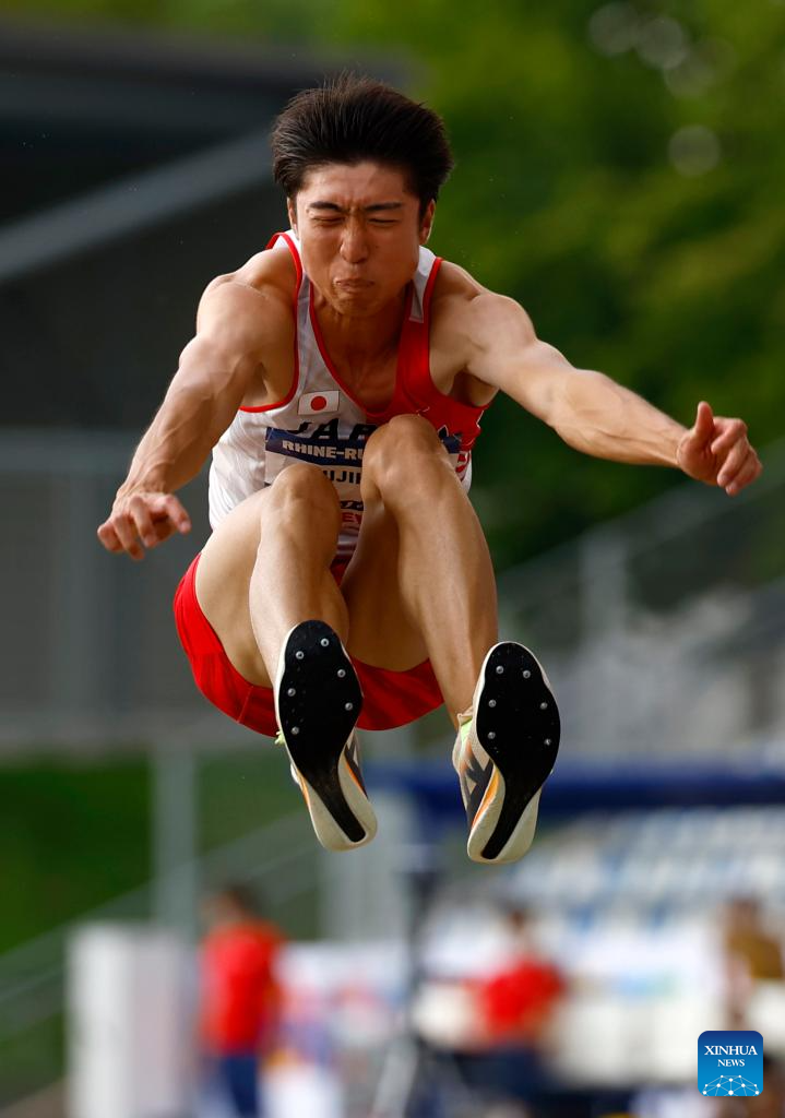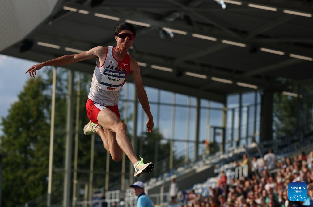 Fujihara Koki of Japan competes during the men's long jump final at the Rhine-Ruhr 2025 FISU World University Games in Bochum, Germany, July 24, 2025. (Xinhua/Hu Xingyu)
