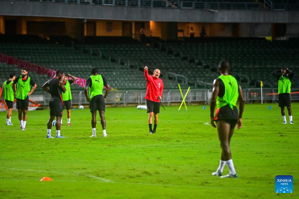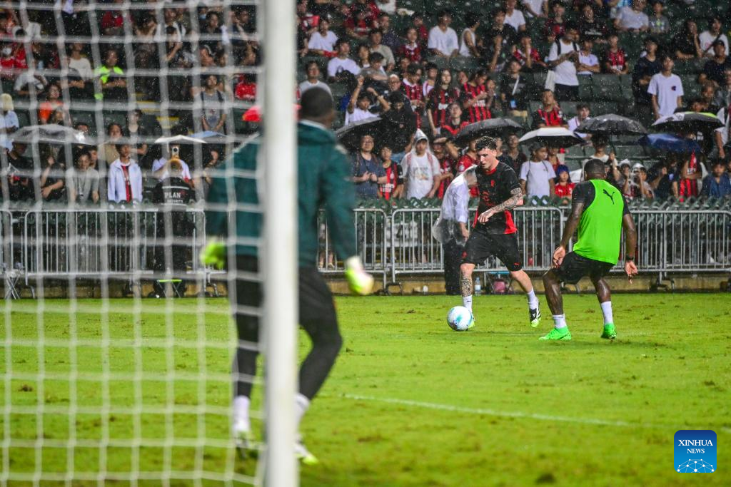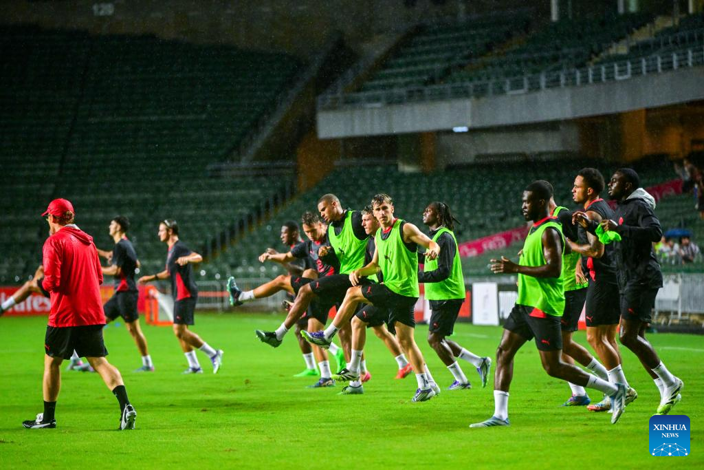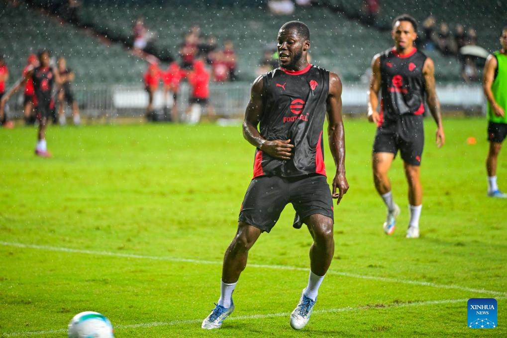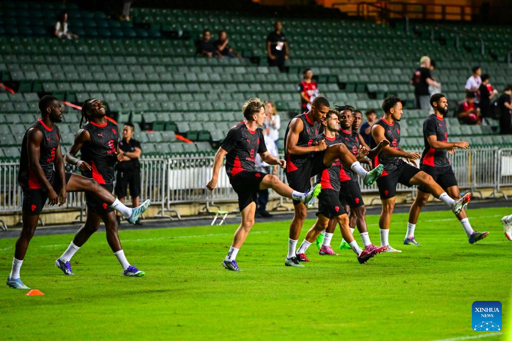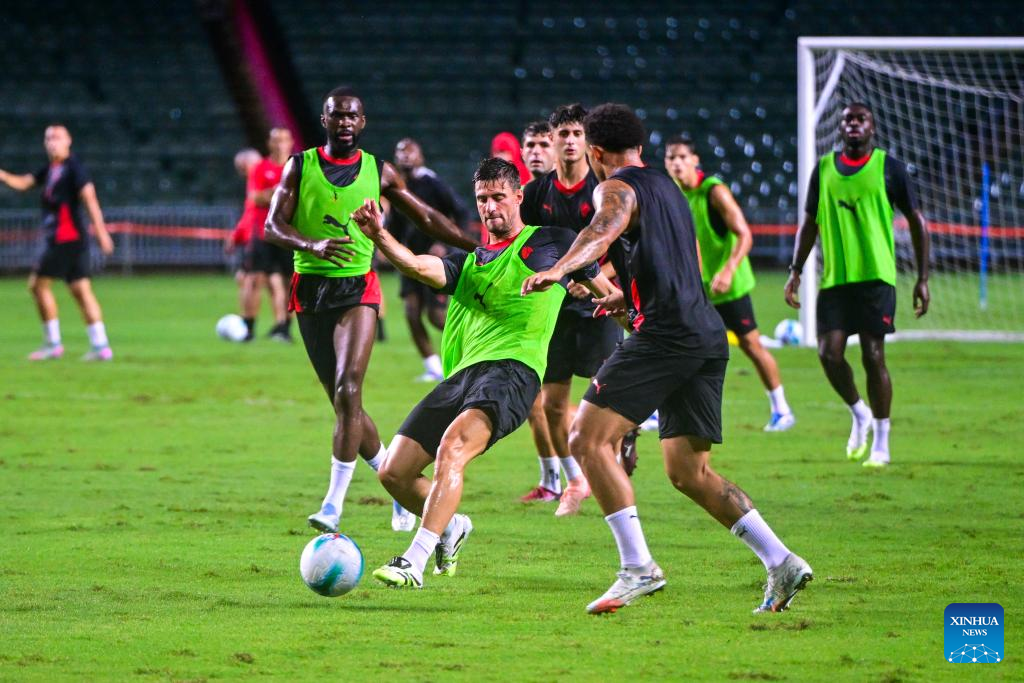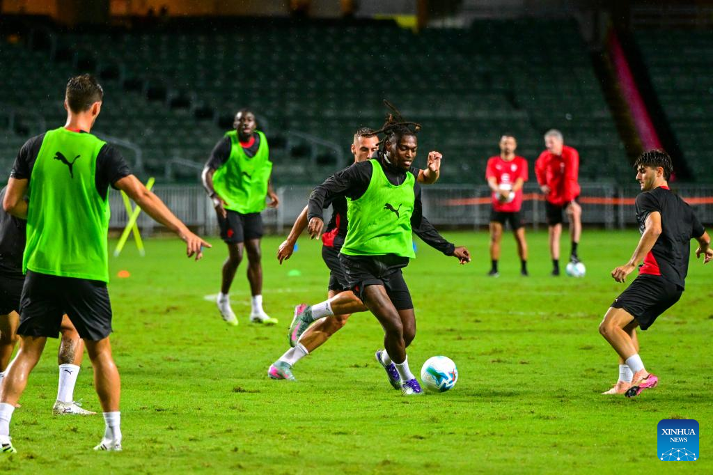 Members of AC Milan attend the open training session in Hong Kong, south China, on July 25, 2025, ahead of the Hong Kong Football Festival match between AC Milan and Liverpool. (Xinhua/Zhu Wei)