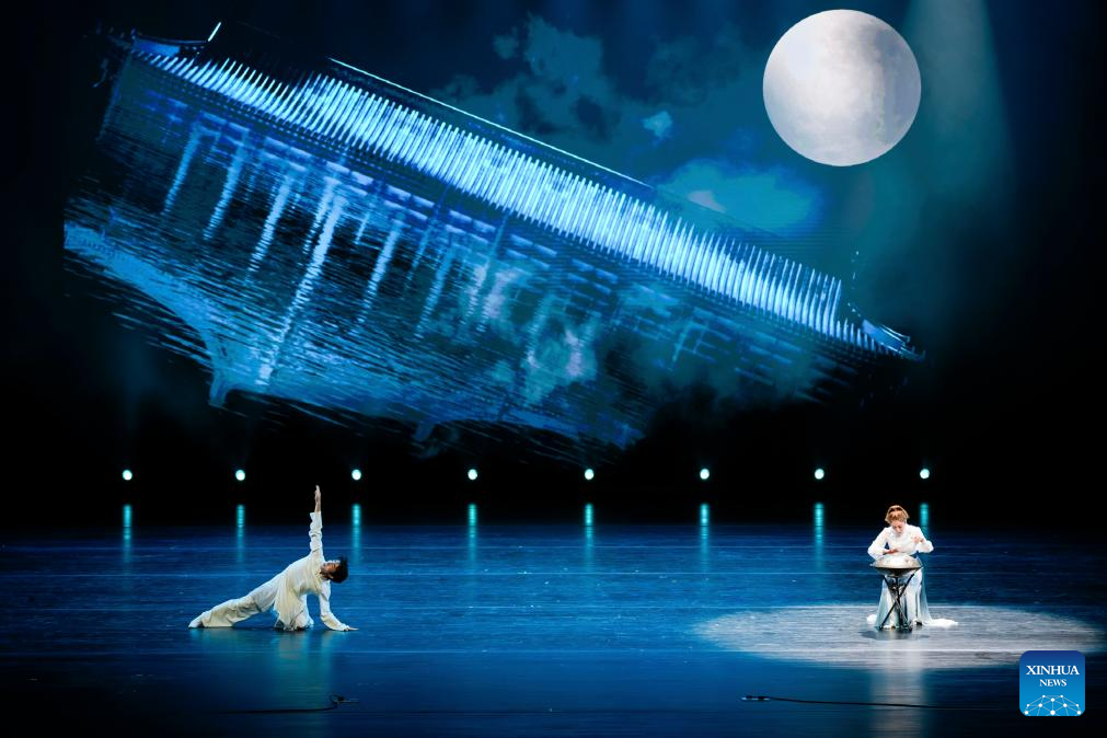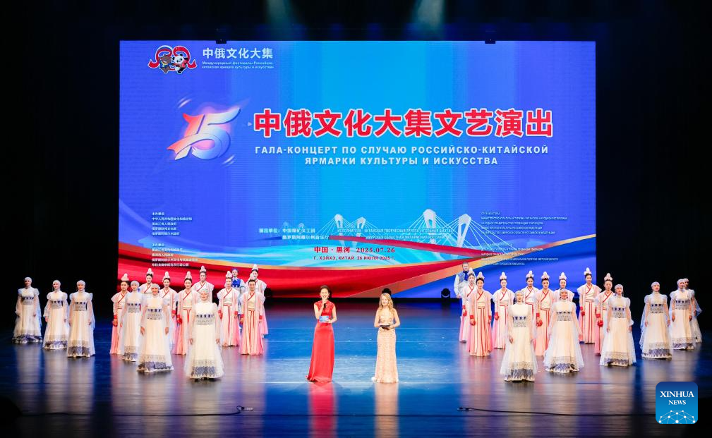 A performance is staged during a China-Russia cultural fair in Heihe, northeast China's Heilongjiang Province, July 26, 2025. The 15th edition of this cultural event kicked off here on Saturday with more than 40 activities in total, facilitating cultural exchanges and regional cooperation between the two countries. (Photo by Zhao Donglai/Xinhua)