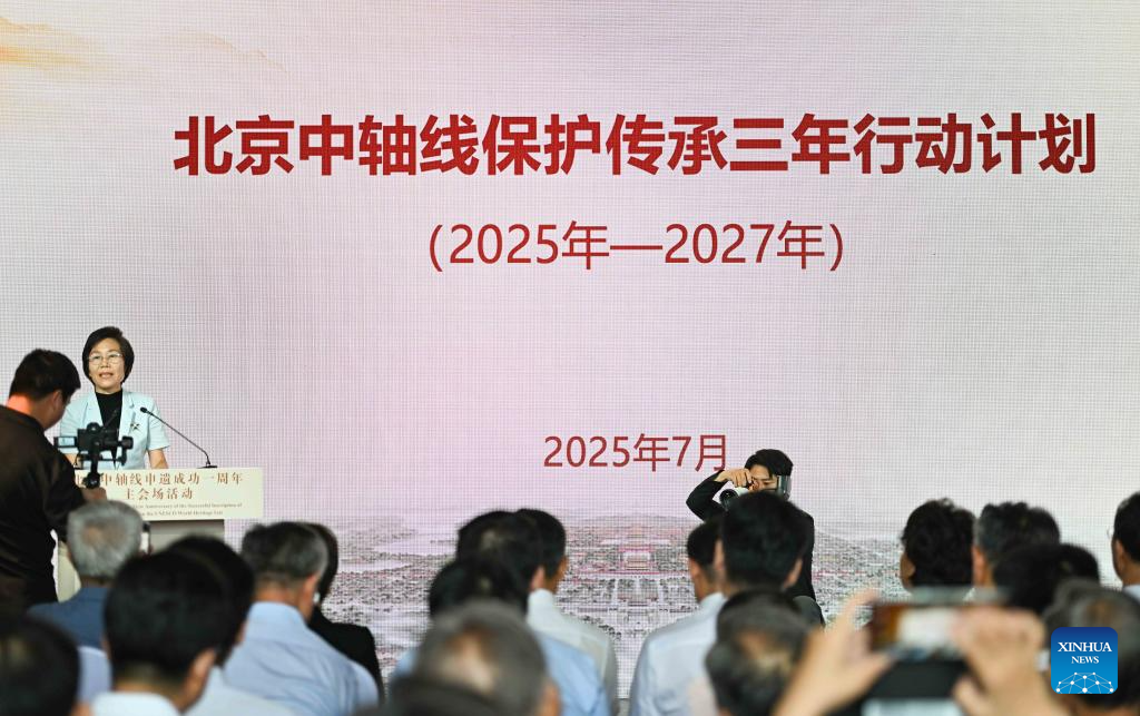A three-year action plan (2025-2027) for the conservation of Beijing Central Axis is released in Beijing, capital of China, July 27, 2025.