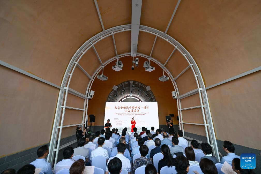 An event marking the first anniversary of the successful inscription of Beijing Central Axis on the UNESCO World Heritage List was held here on Sunday, showcasing achievements made in the protection of and research on the Central Axis. (Xinhua/Chen Zhonghao)