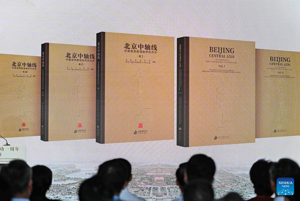 A book collection titled "Beijing Central Axis: A Building Ensemble Exhibiting the Ideal Order of the Chinese Capital" is released in Beijing, capital of China, July 27, 2025.