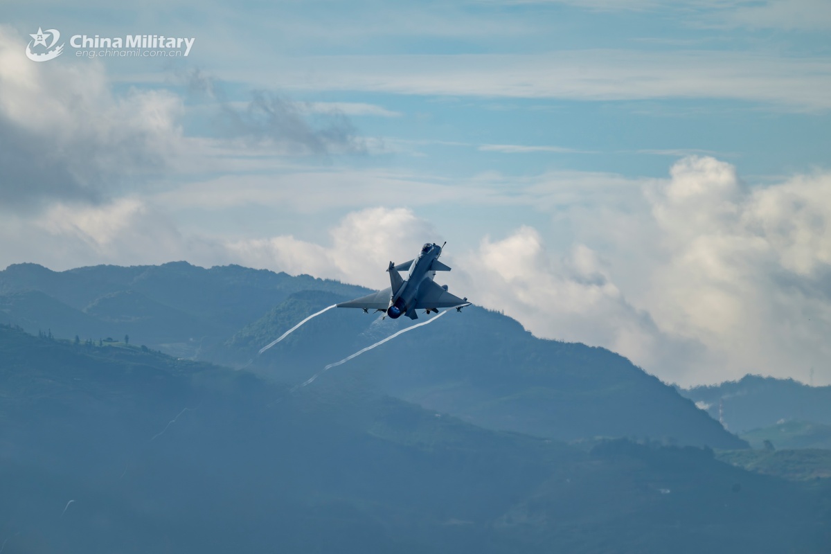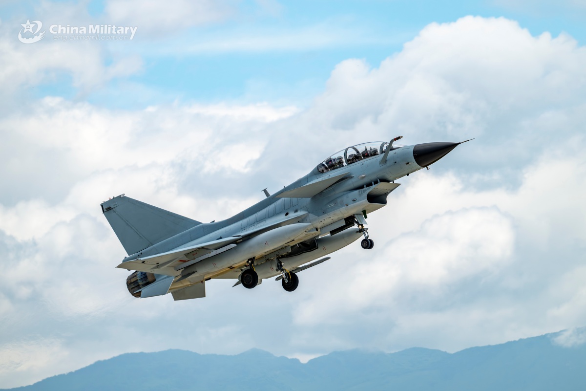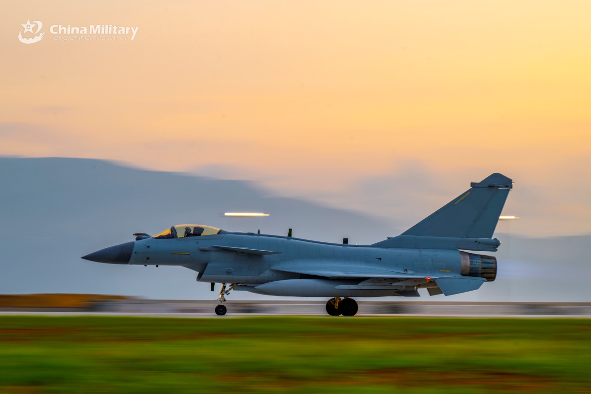 A J-10 fighter jet attached to an aviation brigade with the air force under the Chinese PLA Southern Theater Command takes off during a day-and-night flight training exercise. (eng.chinamil.com.cn/Photo by Xiao Rui)