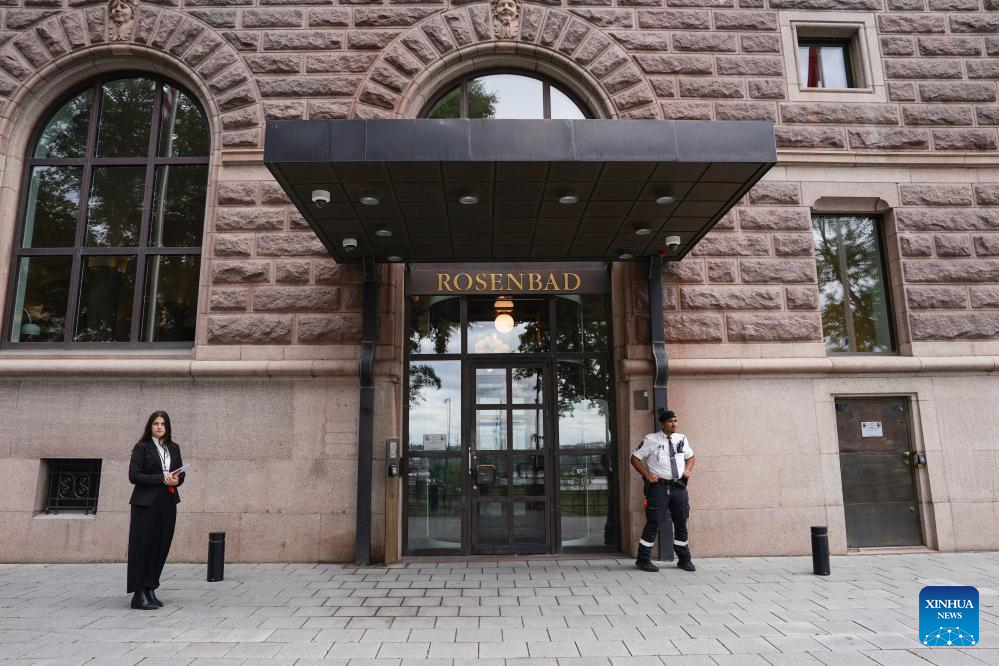 This photo taken on July 28, 2025 shows the Rosenbad building in Stockholm, Sweden. The Chinese and U.S. delegations convened here on Monday for a new round of economic and trade talks. (Xinhua/Dai Tianfang)