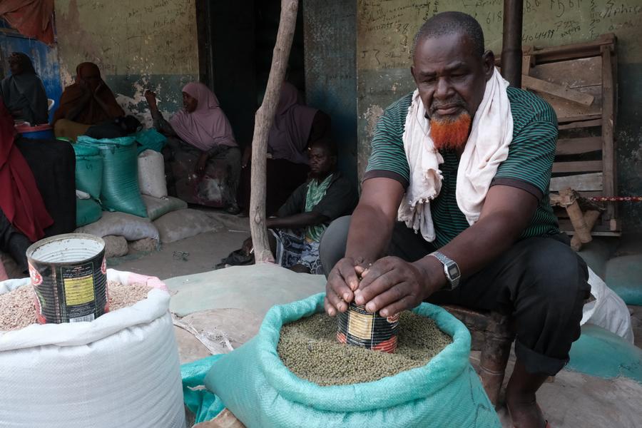 A man sells food products in Balcad town, Shabelle region of Somalia, Dec. 7, 2024. (Photo by Hassan Bashi/Xinhua)