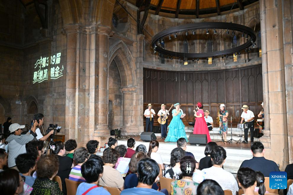 Local residents perform at the Anglican Art Centre in Tianjin Municipality, north China, July 28, 2025.