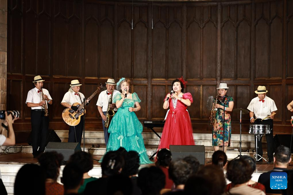 Local residents perform a song at the Anglican Art Centre in Tianjin Municipality, north China, July 28, 2025.