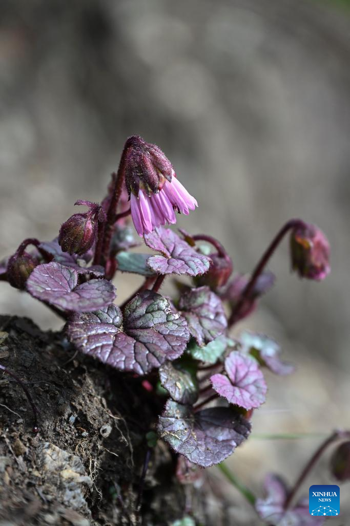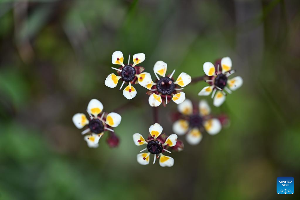 This photo taken on July 23, 2025 shows a Saxifraga melanocentra Franch. on Shika Snow Mountain scenic area in Shangri-la, the Deqen Tibetan Autonomous Prefecture, southwest China's Yunnan Province. Known as "Plant Kingdom" in China, Yunnan nurtures a wealth of rare alpine plants thanks to its unique geographical position, diverse landforms and complex climatic conditions. (Xinhua/Qin Qing)