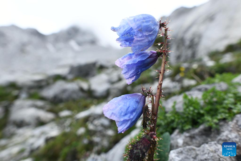 This photo taken on July 23, 2025 shows a Meconopsis rudis on Yulong Snow Mountain in Lijiang, southwest China's Yunnan Province. Known as "Plant Kingdom" in China, Yunnan nurtures a wealth of rare alpine plants thanks to its unique geographical position, diverse landforms and complex climatic conditions. (Photo by Zhao Qingzu/Xinhua)
