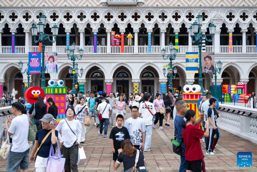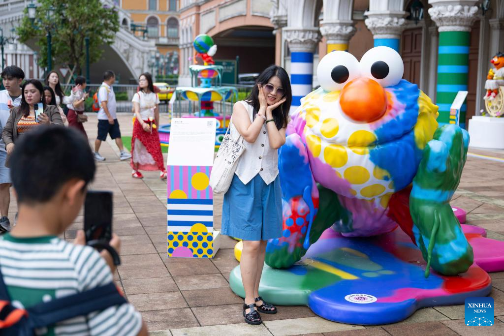Tourists visit the special exhibition "Dopamine: Fountain of Happiness" at the Venetian Macao in Macao, south China, July 29, 2025. As a special exhibition of Art Macao: Macao International Art Biennale 2025, the event kicked off here on Tuesday. (Xinhua/Cheong Kam Ka)