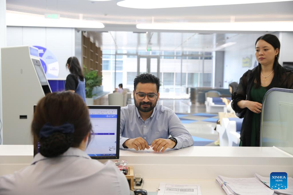 Pakistani businessman Ali Kamran receives the business license for his company set up in Yiwu, east China's Zhejiang Province, with his firm becoming the 10,000th foreign-funded company registered in Yiwu on July 31, 2025. (Xinhua)