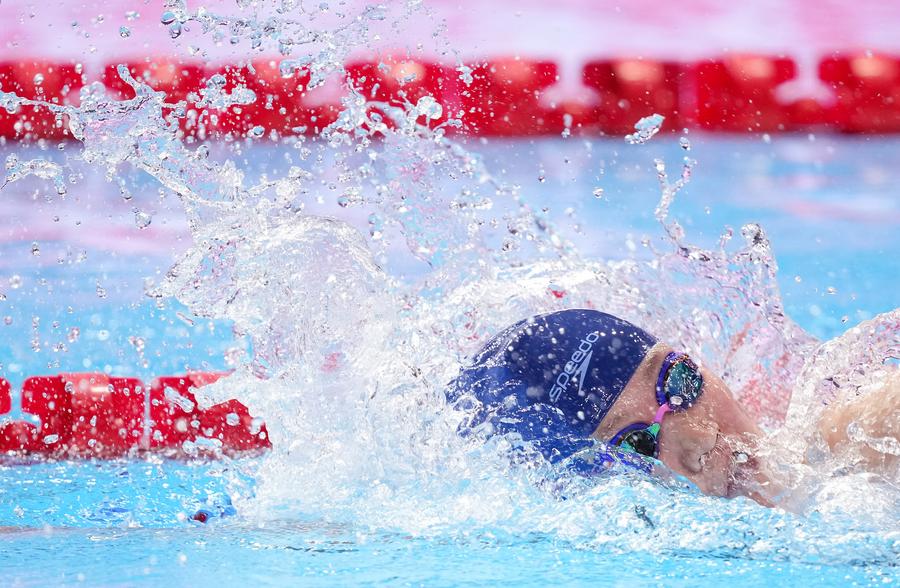 Team China's Li Bingjie in action during the women's 4x200m freestyle relay final. (Xinhua/Wu Zhizun)