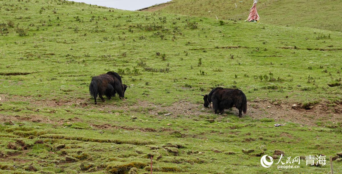 Yaks forage in the alpine pastures of the Yellow River valley in Dari county, Golog Tibetan Autonomous Prefecture, northwest China's Qinghai Province. (People's Daily Online/Yang Qihong)